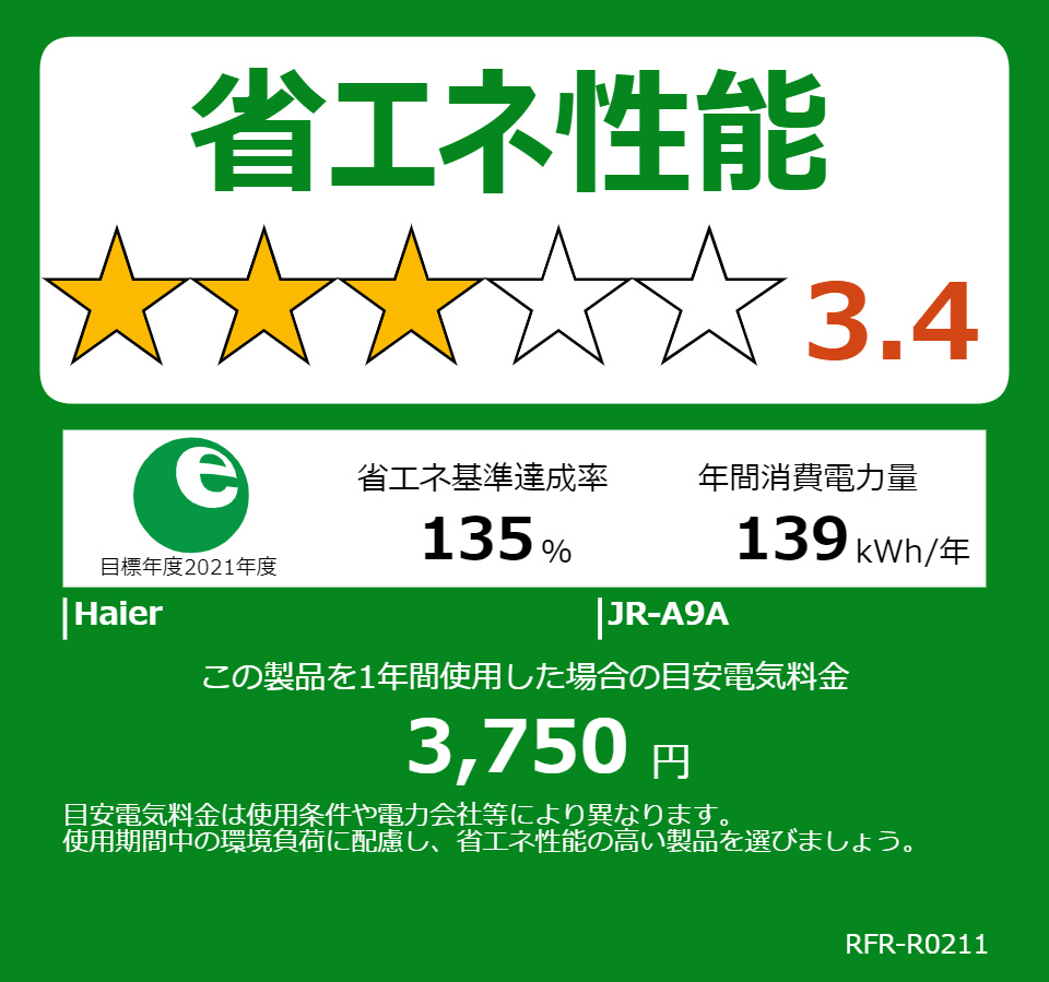 | 省エネ性能(目標年度2021) | ★★★☆☆ 3.4 |