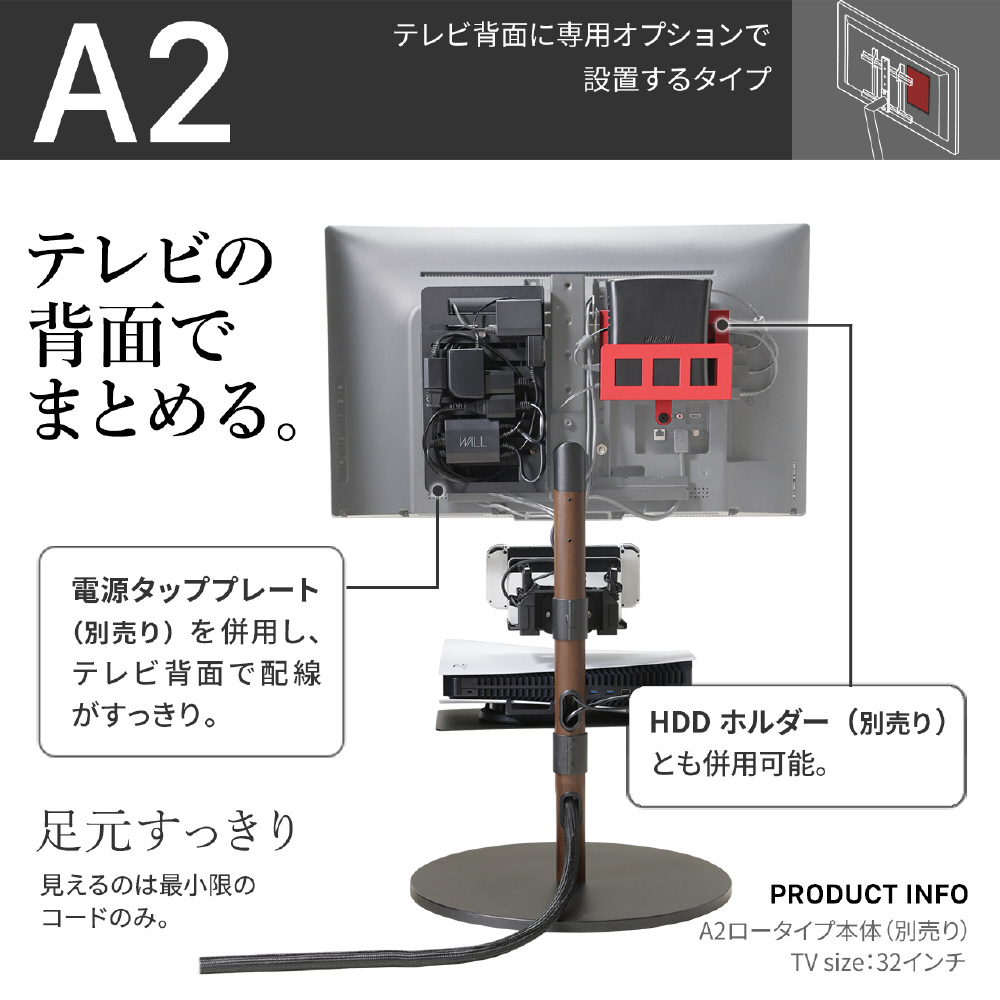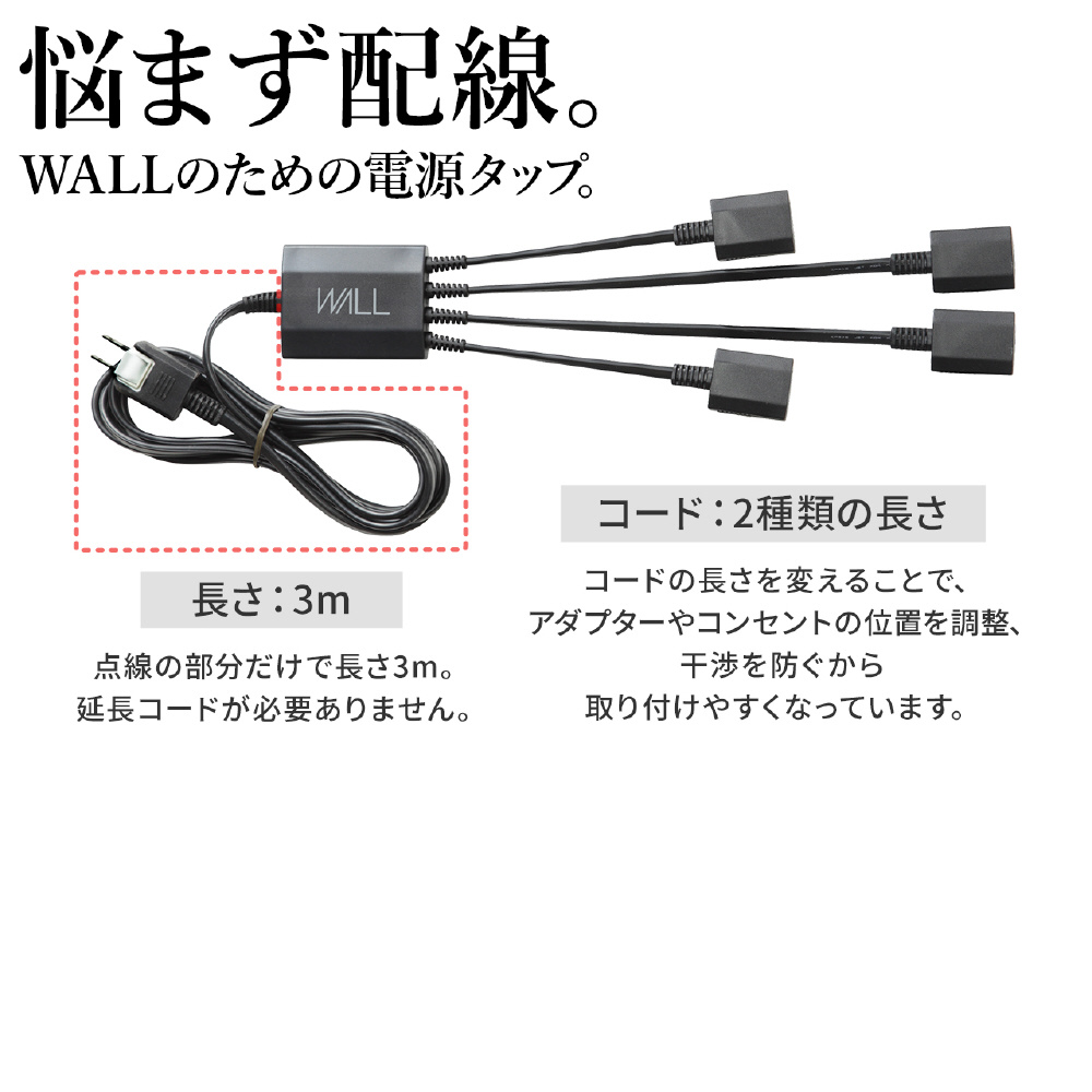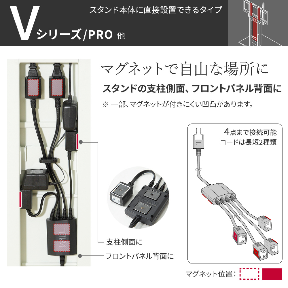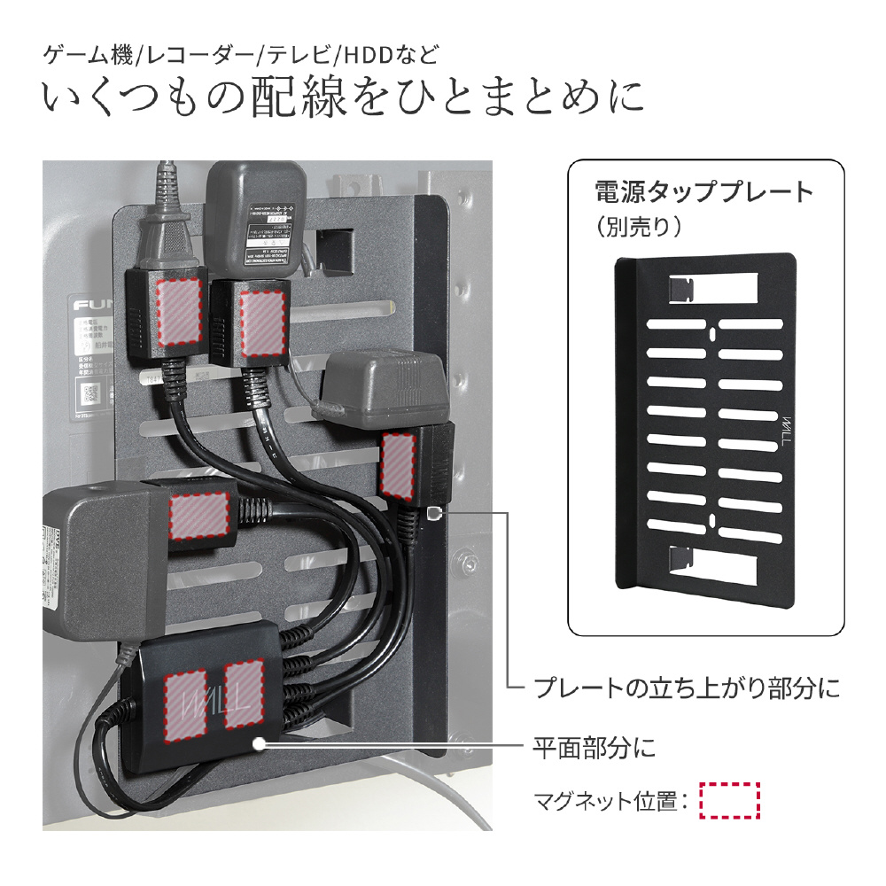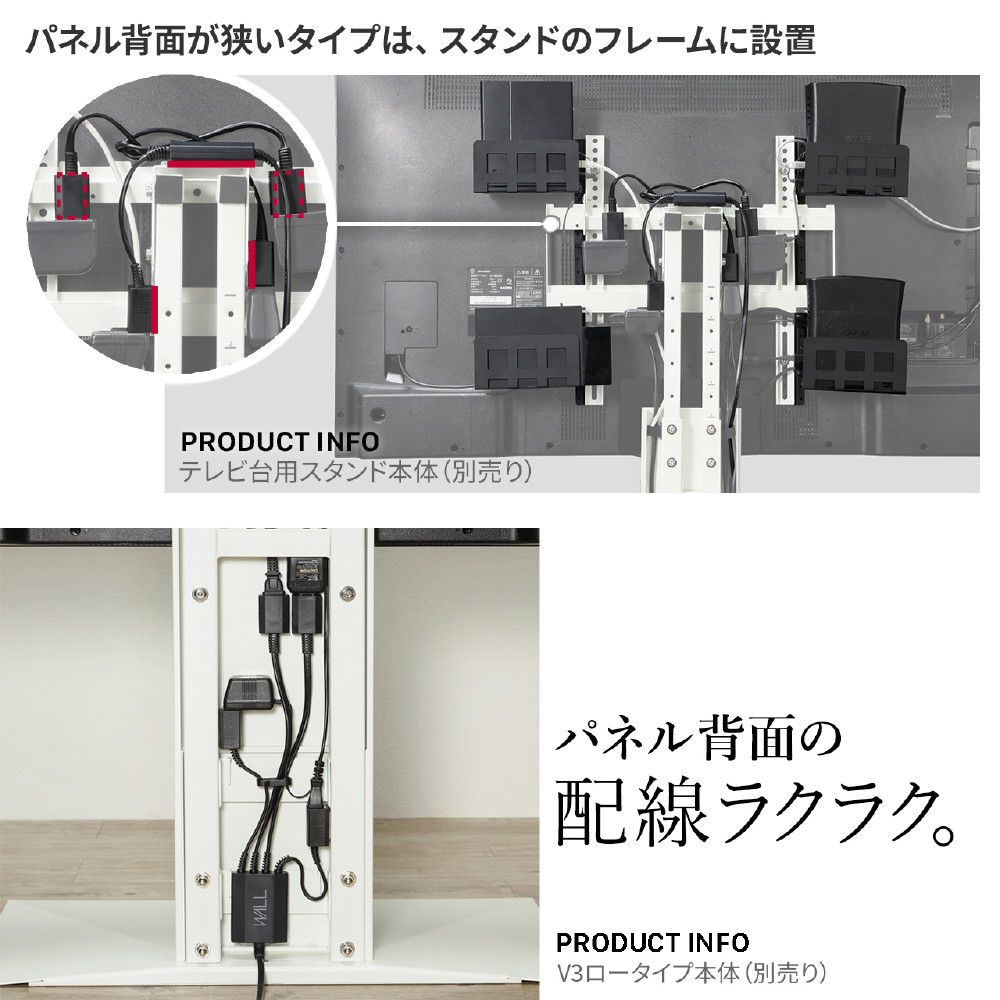 WALLテレビスタンドをよりスッキリ、快適に使える専用電源タップ。まとめにくい配線をスマートに収納できます。