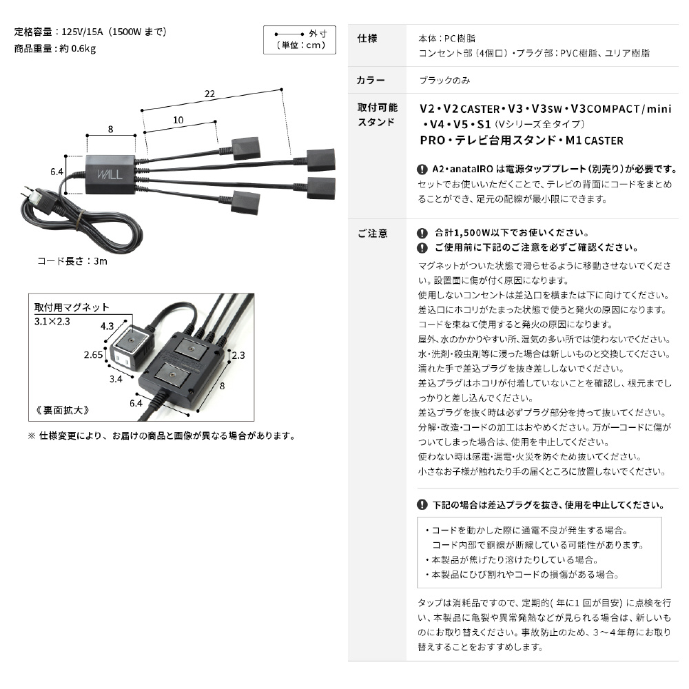 WALL TVスタンド マグネット付き スマート電源タップ WLPS95119
