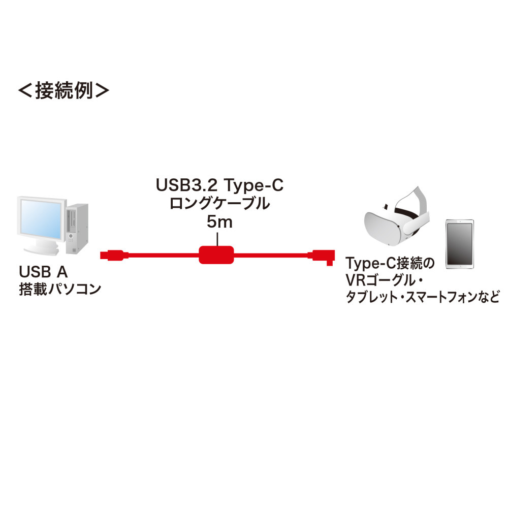 USB-A ⇔ USB-Cケーブル [充電 /転送 /5m /USB3.2 Gen1 /L型] VRヘッドセット対応 KB-USB-RLC305