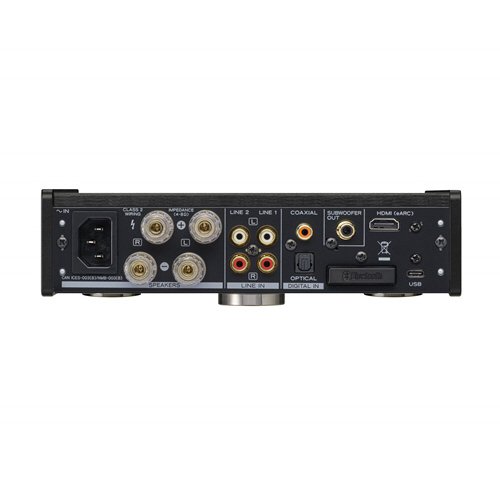 小型アンプにBluetoothとUSB 入力を搭載しHD音源(ハイレゾ)再生にも対応したデスクトップオーディオ・アンプ。横幅わずか215mmでテレビやノート PCの高音質再生にも最適