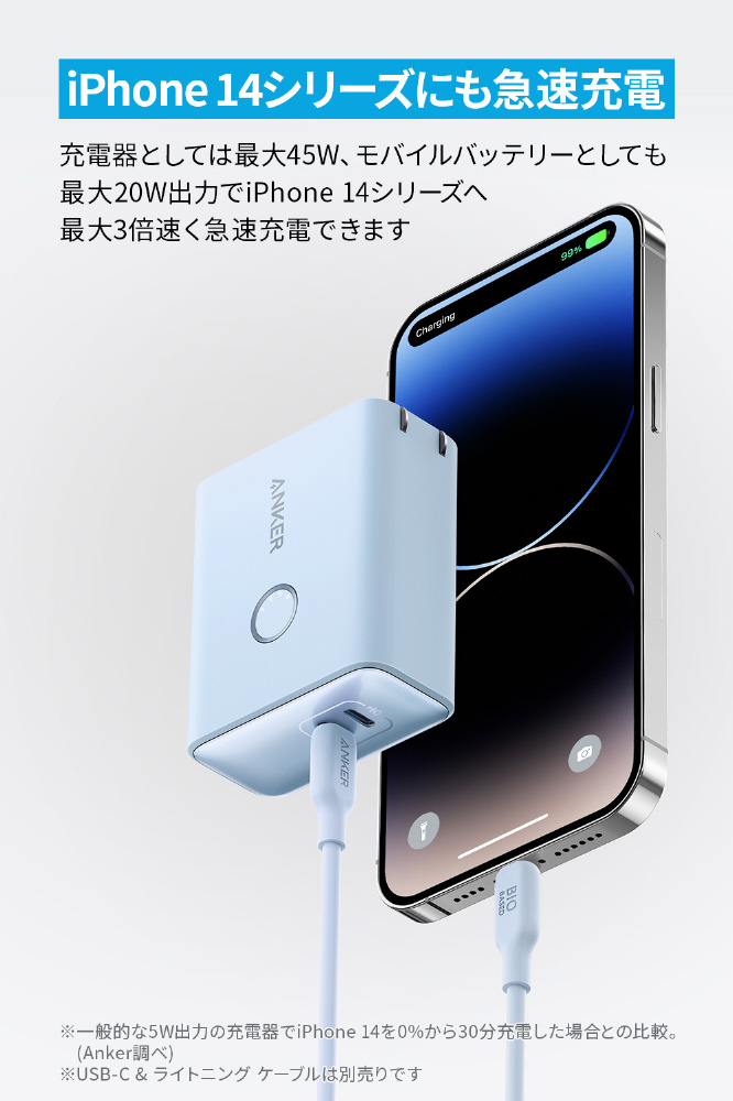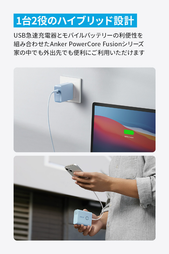 1台2役のハイブリッド設計で充電忘れのないモバイルバッテリー