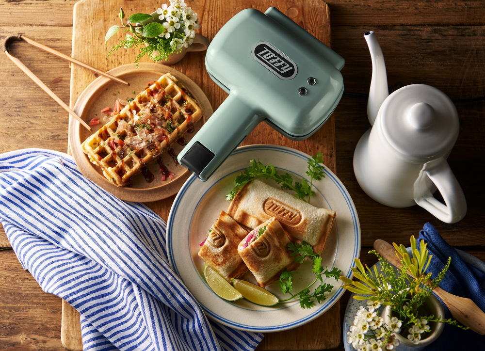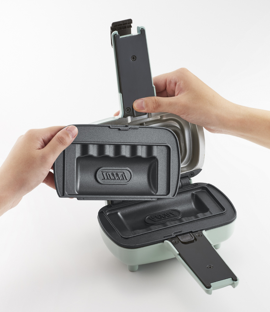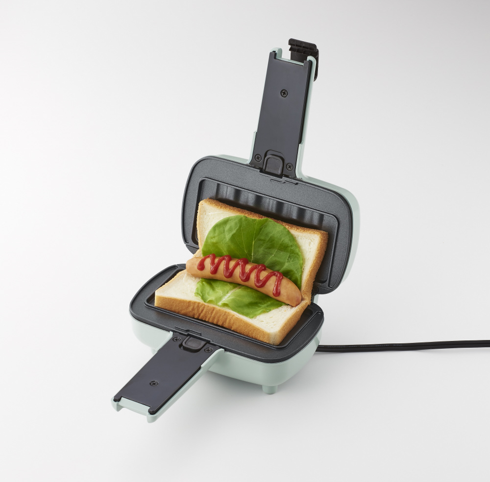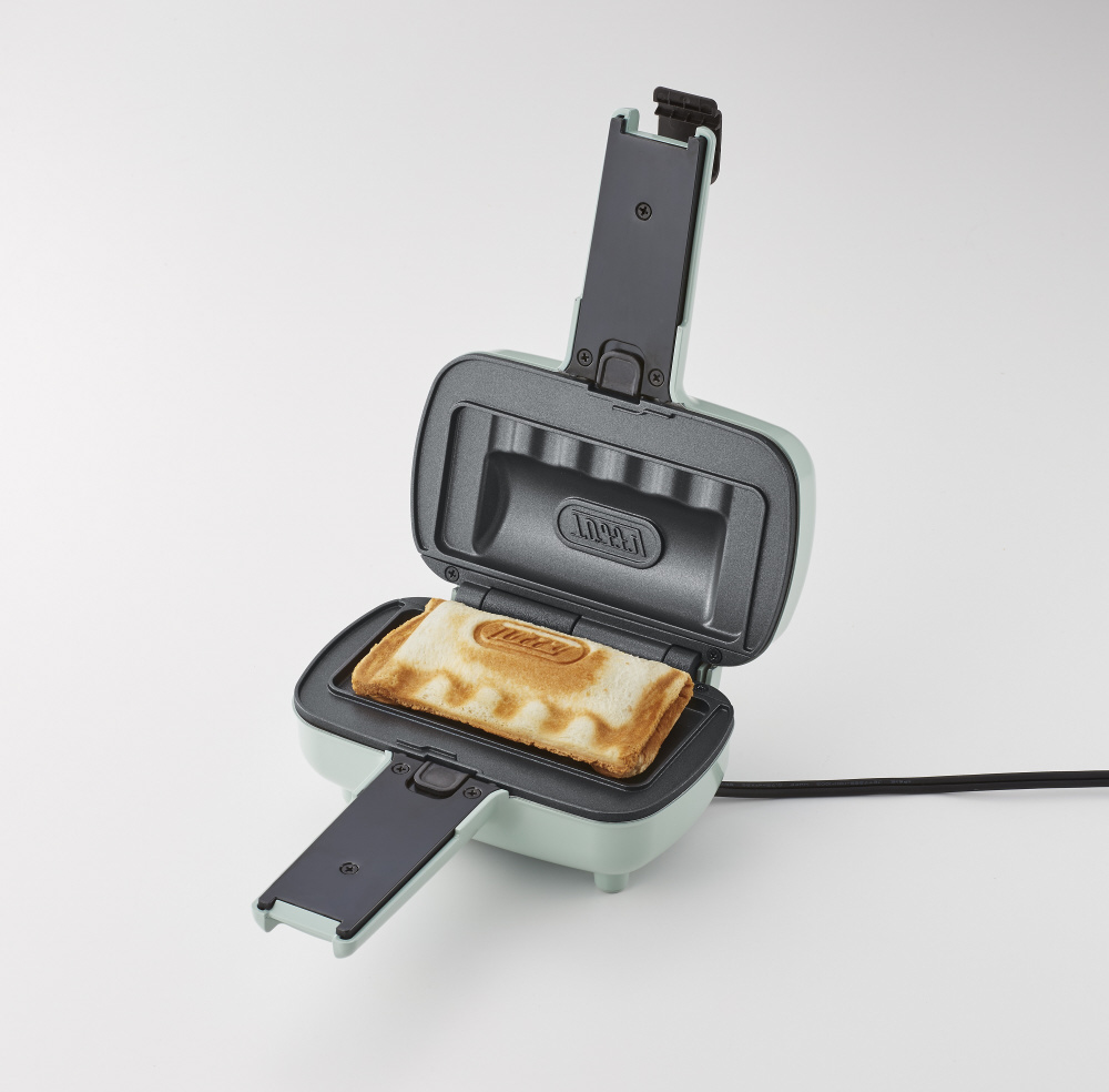 一枚のパンを折りたたんで作る“ハーフホットサンド”ができる電気ホットサンドメーカーにプレート交換式が登場!