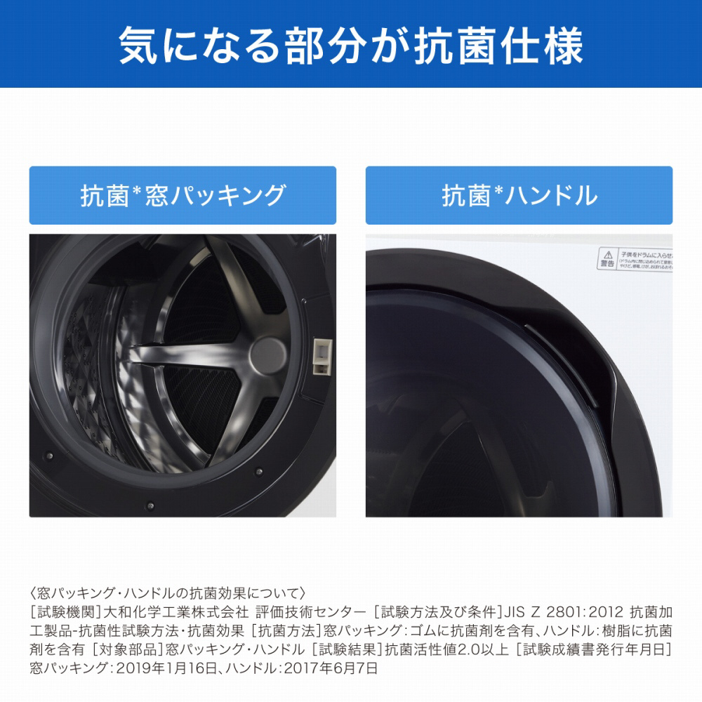 ヒートポンプ乾燥搭載のななめドラム洗濯乾燥機。