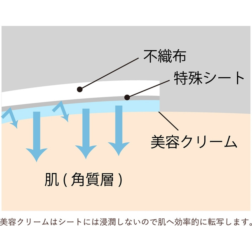 二枚合わせのシートの内側に美容クリームを均一に塗布した構造。