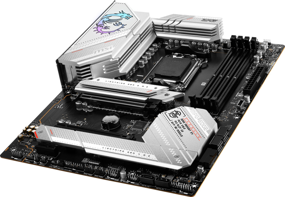 AMD B650チップセット搭載。シルバーホワイトのデザインと豊富なゲーミング機能を備えたATXマザーボード