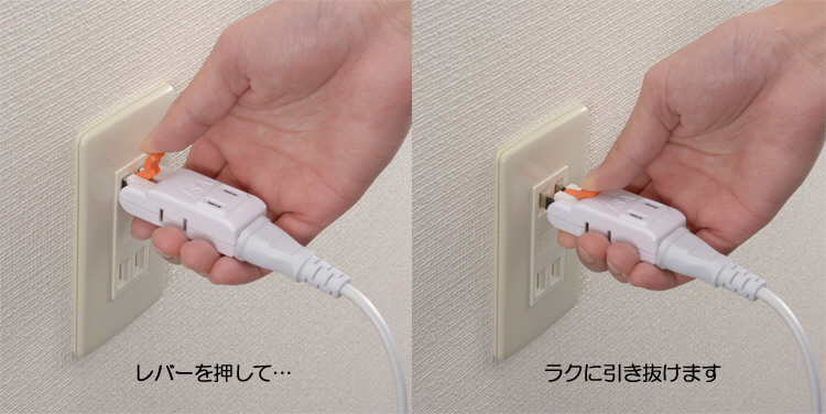 楽々抜取りレバーで力を使わずにコンセントから引き抜けます。