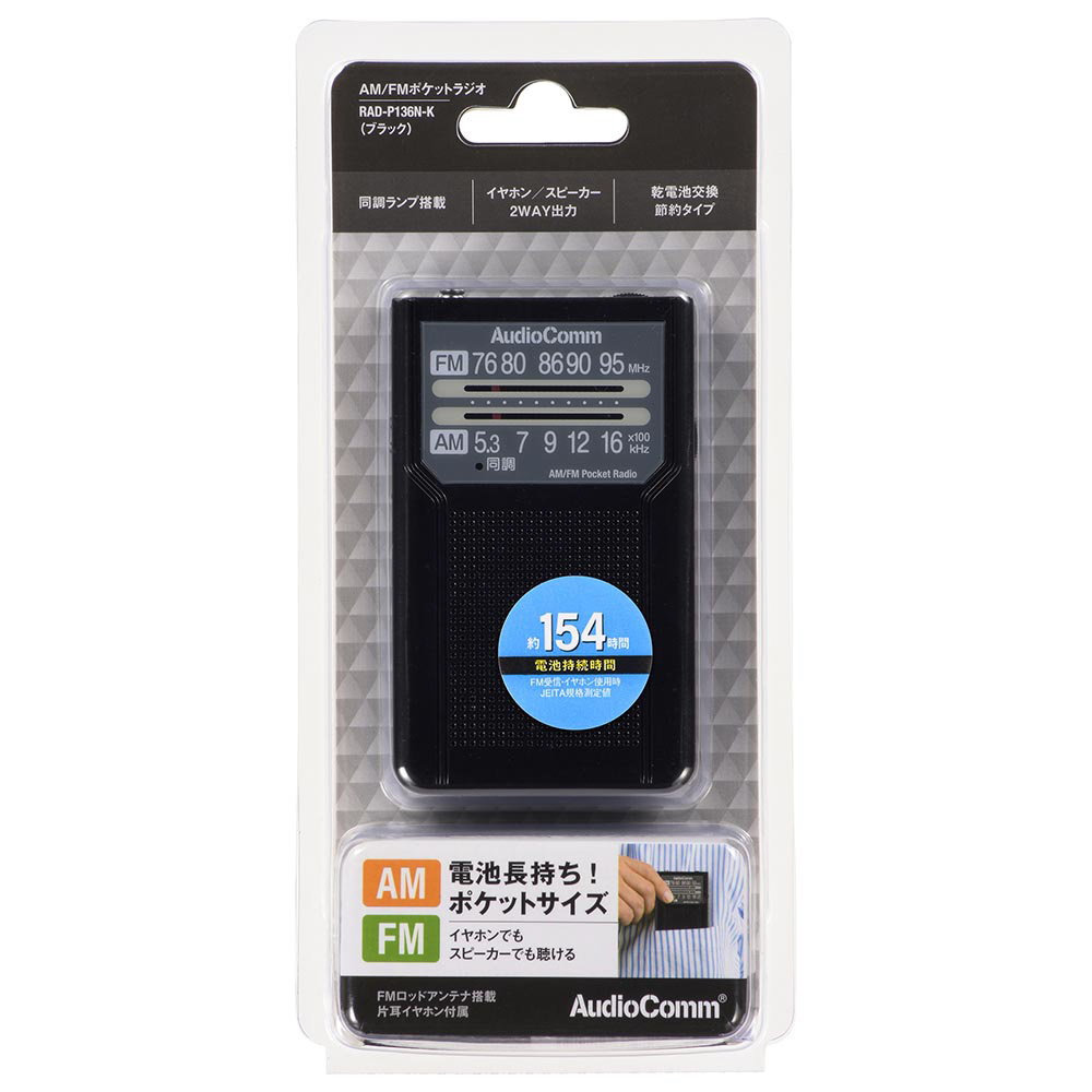 | 商品名 | AM/FMポケットラジオ 電池長持ちタイプ AudioComm ブラック RAD-P136N-K [ワイドFM対応 /AM/FM] |