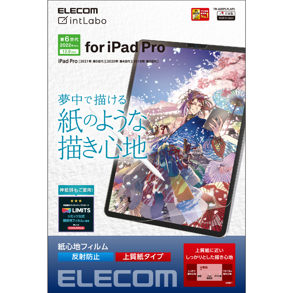 ■iPad Pro 12.9インチ 第6世代(2022年モデル)、iPad Pro 12.9インチ 第5世代(2021年モデル)、iPad Pro 12.9インチ(2020年春モデル)、iPad Pro 12.9インチ(2018年モデル)の液晶画面を傷や汚れから守る、指紋防止、反射防止タイプの紙心地フィルムです。