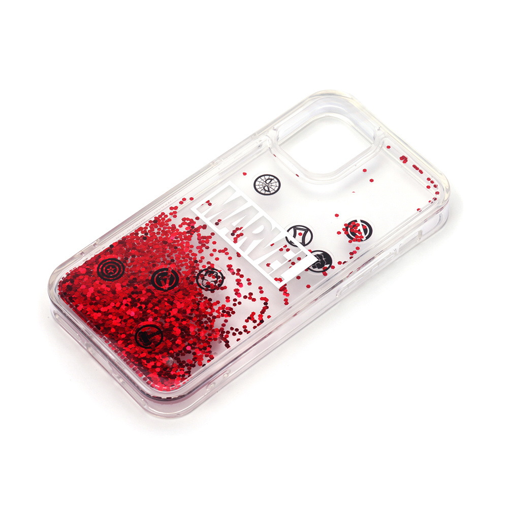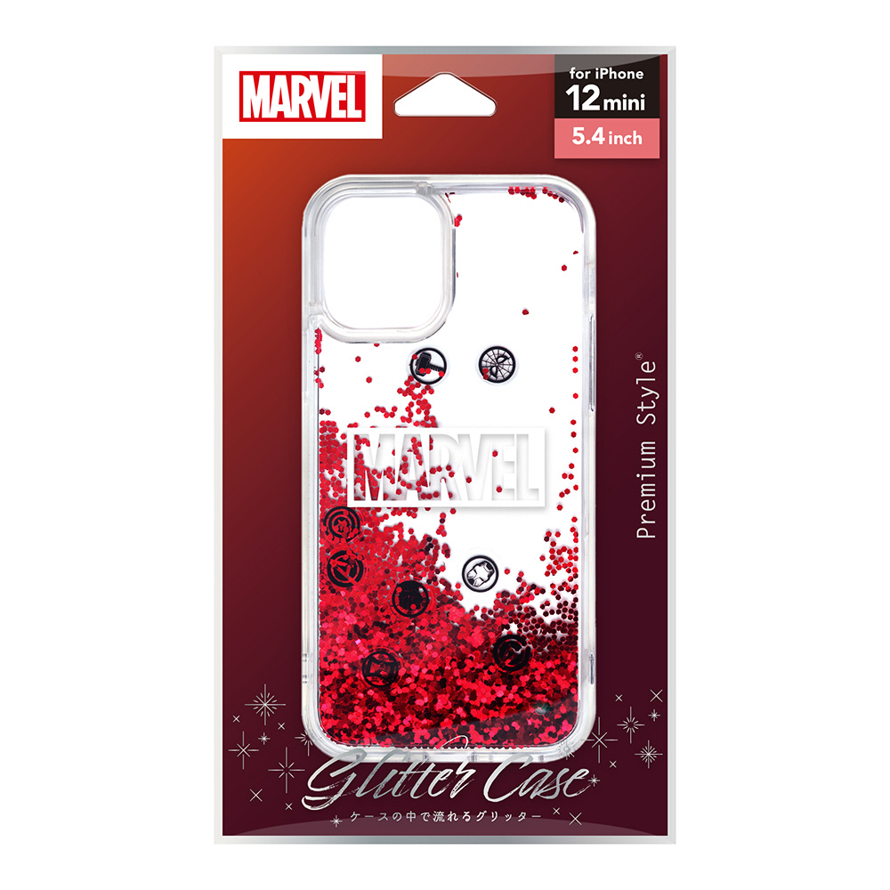 「MARVEL」キャラクターデザインのキラキラ輝くグリッター入りのiPhone 12 mini用グリッターケース