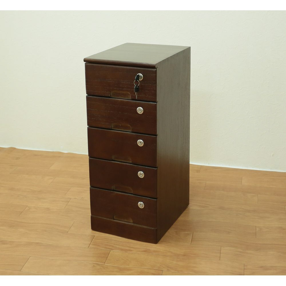 全段カギ付きリビングチェスト5段