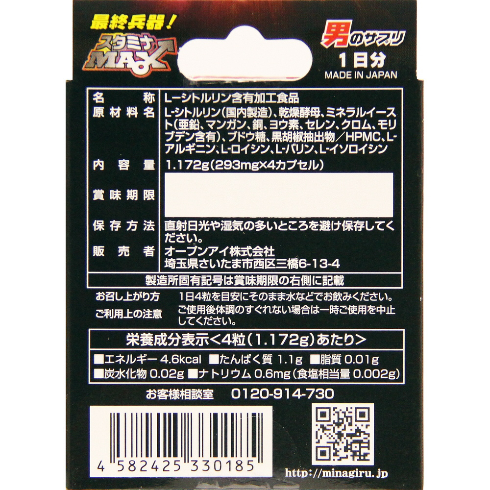| 商品名 | オープンアイ スタミナMAX 1日分 4粒 |