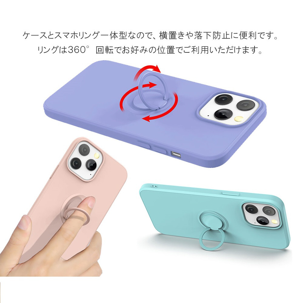 携帯ケースとリングは一体型でシンプル、シリコン製なので落下しにくく、本体を擦り傷、