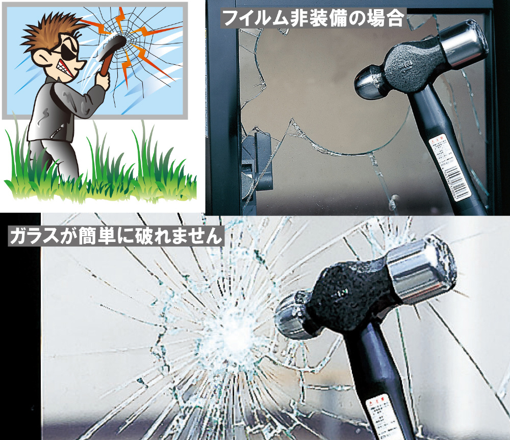 窓に張り付ける防犯フイルム。フイルム総厚206ミクロン。