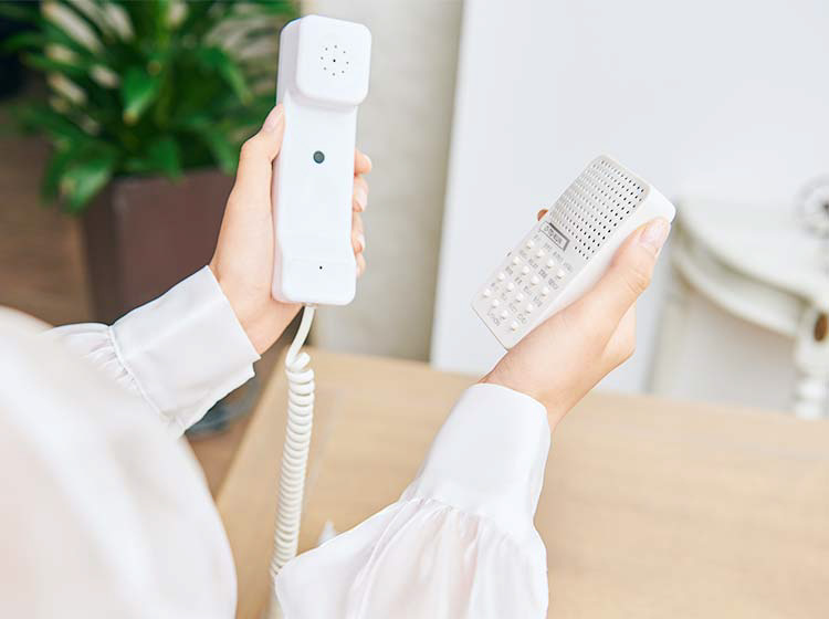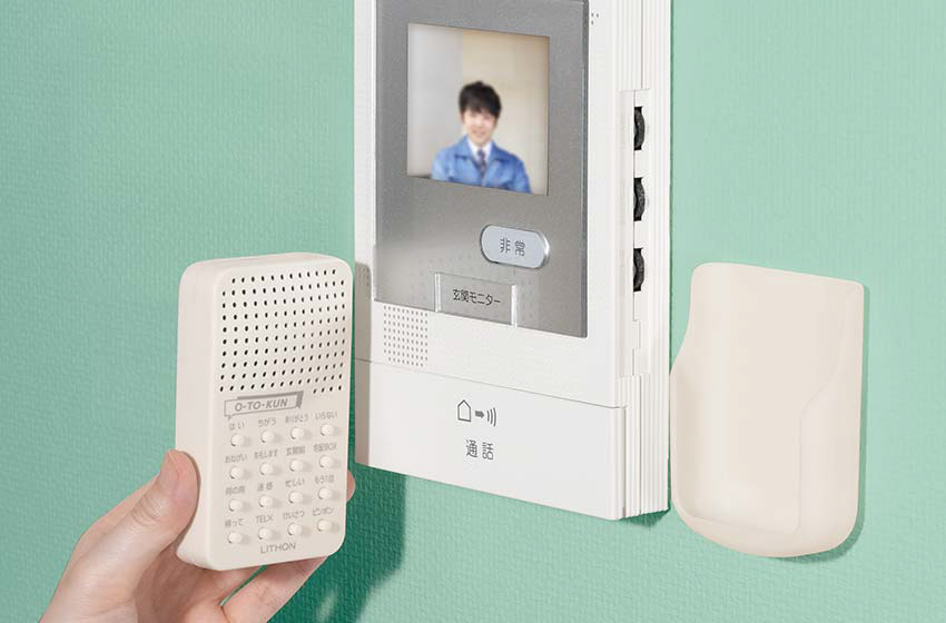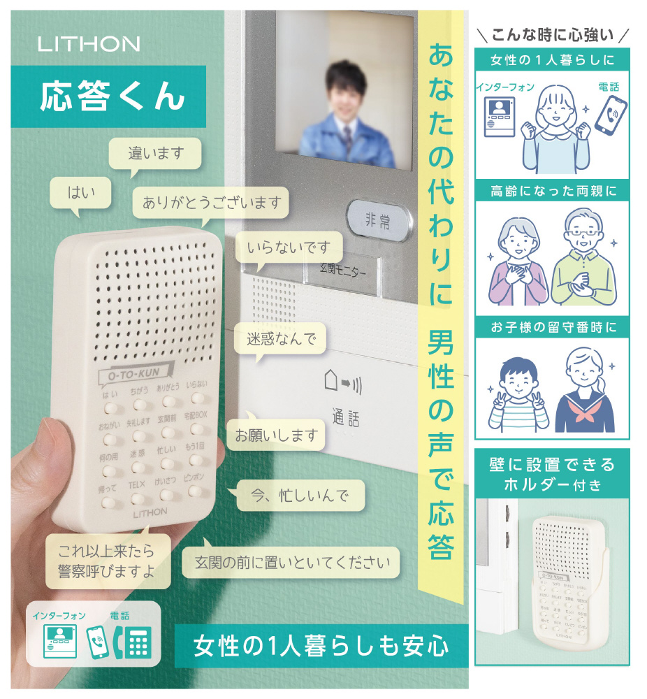 玄関先での対面のやり取りにストレスや不安を感じる方をサポート。インターホンや電話越しにボタンを押すと、男性の声で相手に応答します。