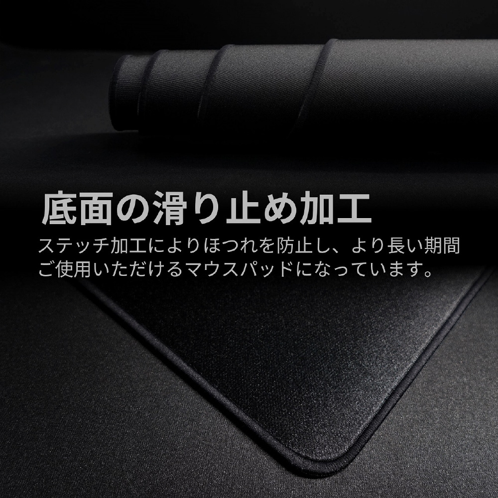 ステッチ加工によりほつれを防止し、製品の劣化を抑えることで、より長い期間ご使用いただけるマウスパッドになっています。