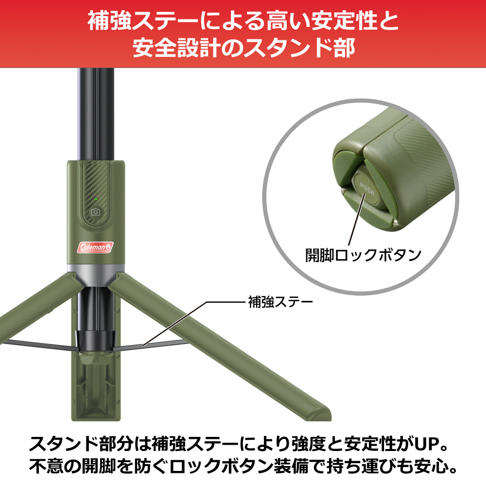 | 商品名 | Coleman(コールマン) セルフィースタンド ロング グリーン ベルボン (Velbon) グリーン CVSSLYBGR 【864】 |