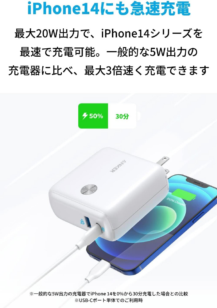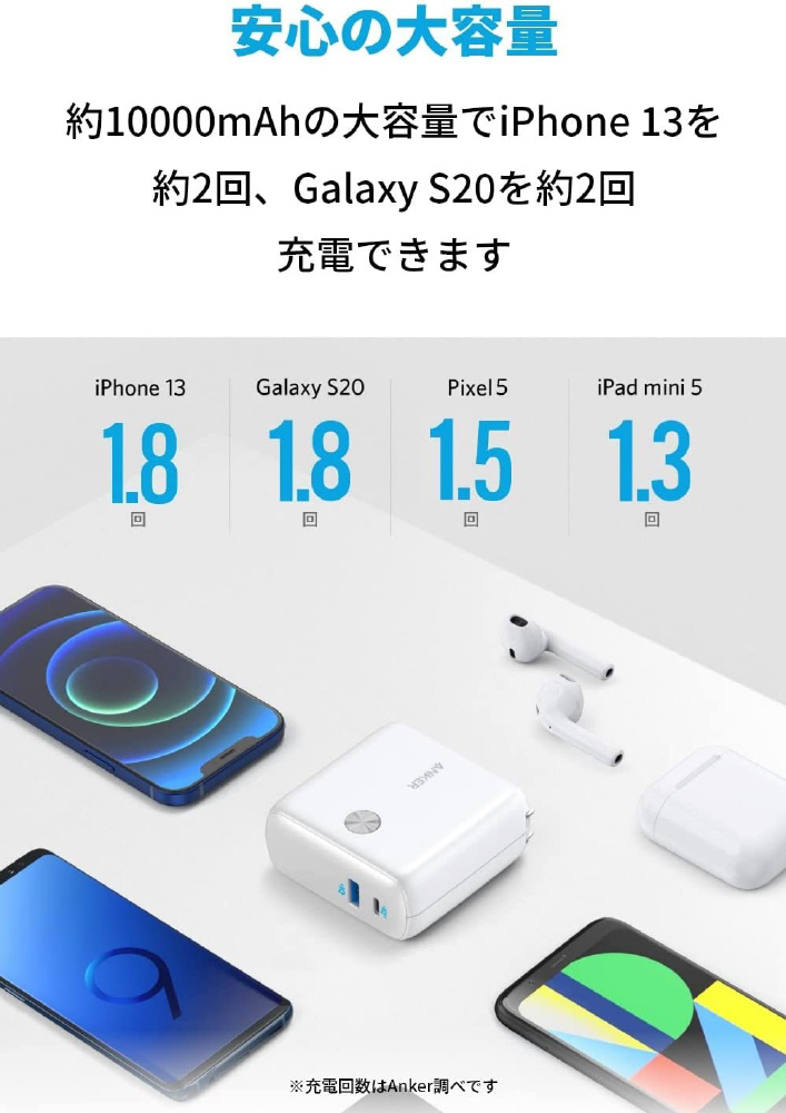 モバイルバッテリー搭載USB充電器 PowerCore Fusion 10000 10000mAh 付属ケーブル:A to Type-C ホワイト A1623125 [USB Power Delivery・Quick Charge対応 /2ポート]
