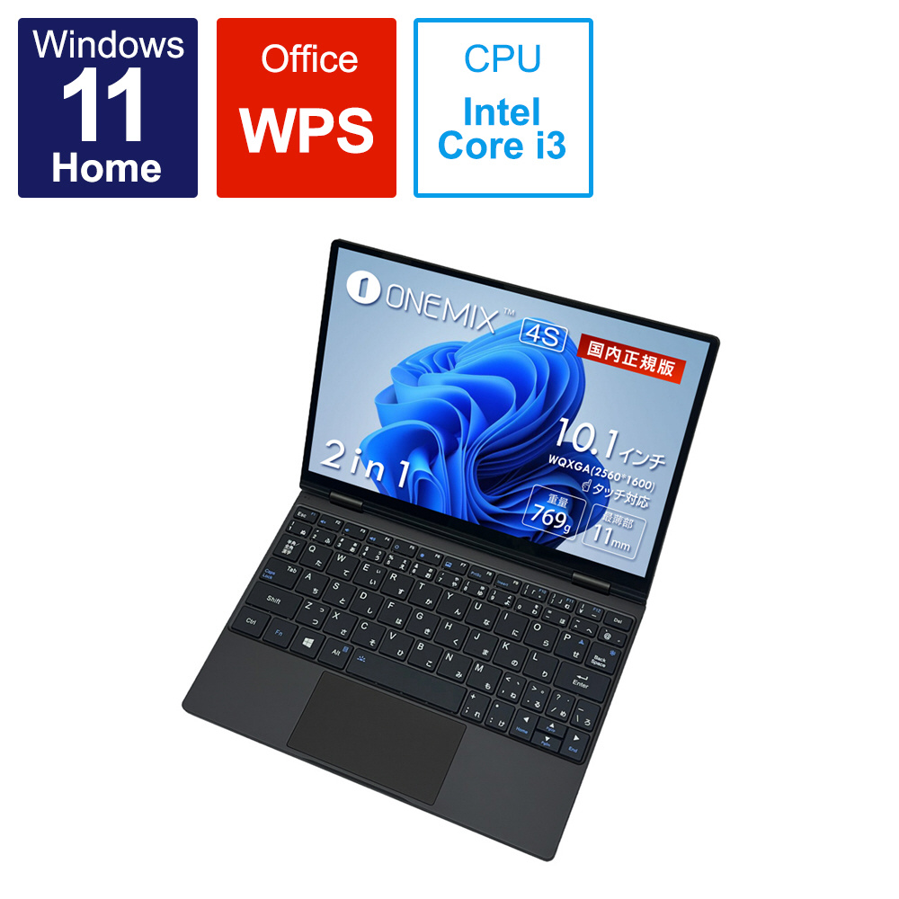 ノートパソコン OneMix4S ブラック ONEMIX4S-J3-5R [10.1型 /Windows11 Home /intel Core i3 /メモリ:16GB /SSD:512GB /WPS Office /日本語版キーボード /2022年12月モデル]
