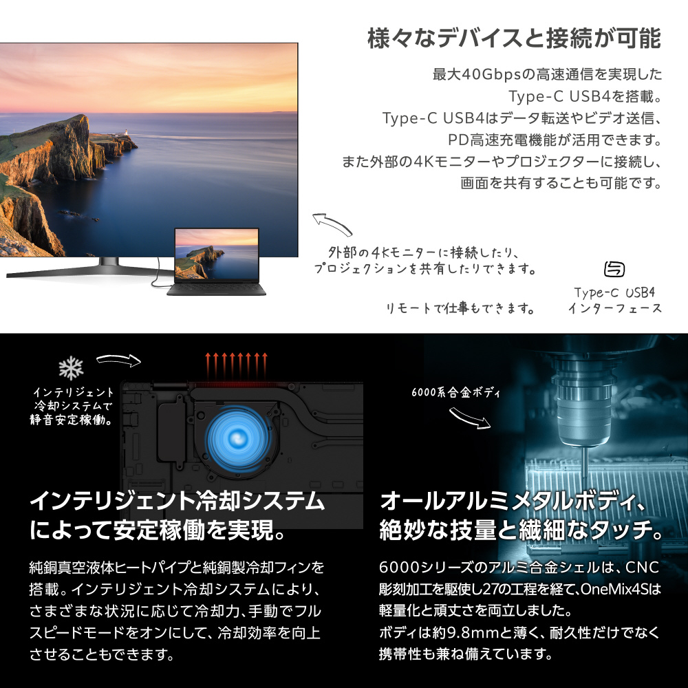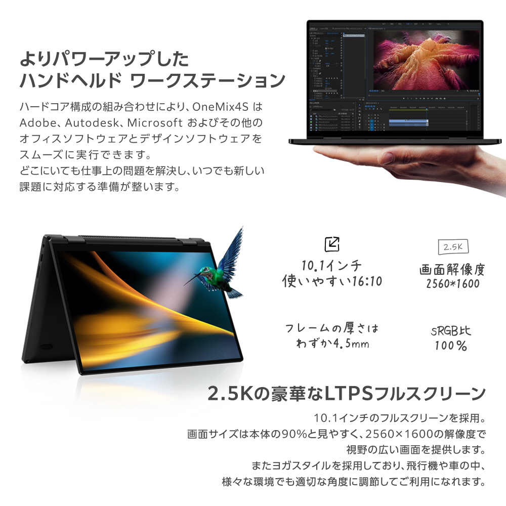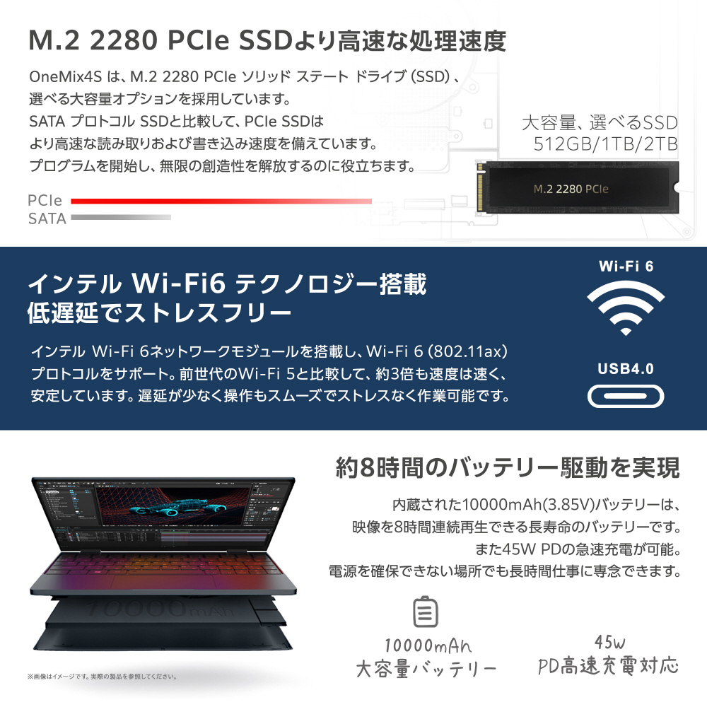 「OneMix4S 国内正規版 (Core i3-1210U/16GB /512GB SSD /WPS Office付)日本語キーボード 」
