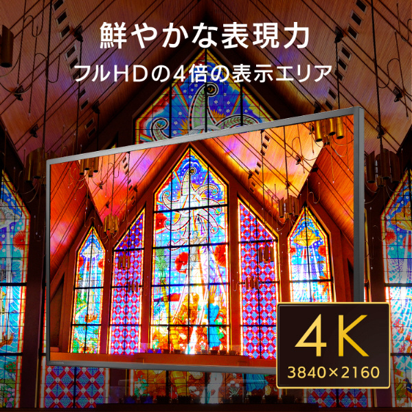 本商品は、4K UHD(3840×2160ピクセル)解像度に対応した、大画面43型(可視領域42.5型)のワイド液晶ディスプレイです。