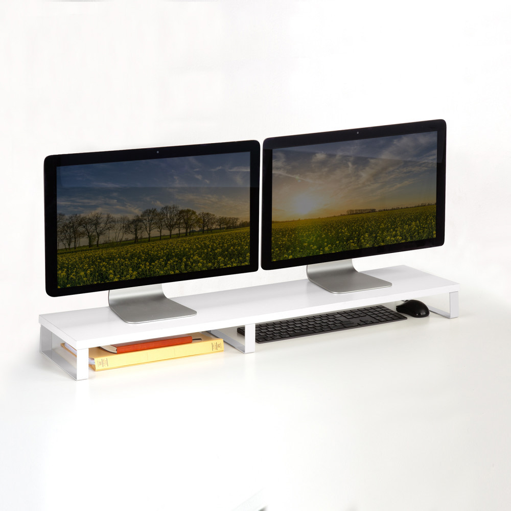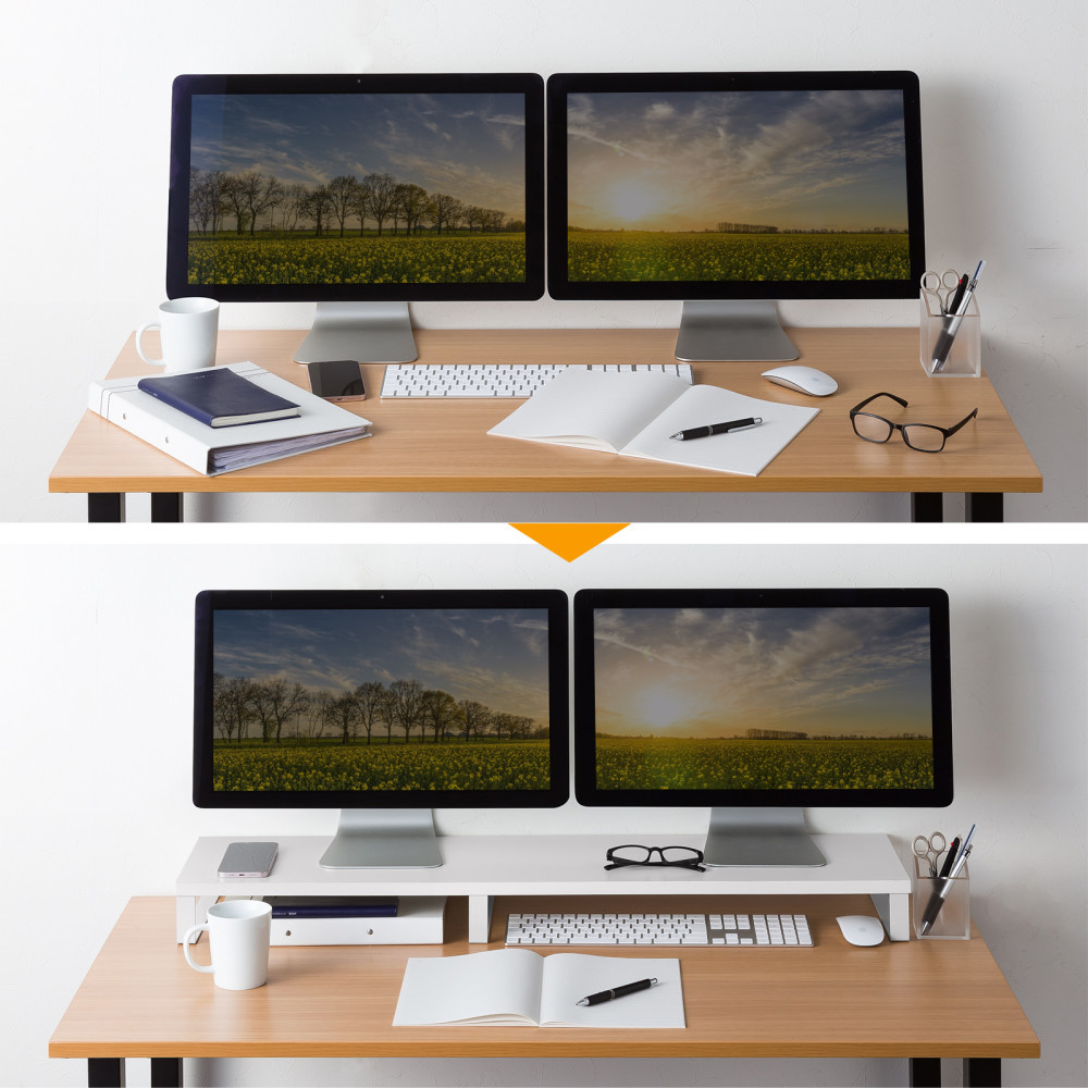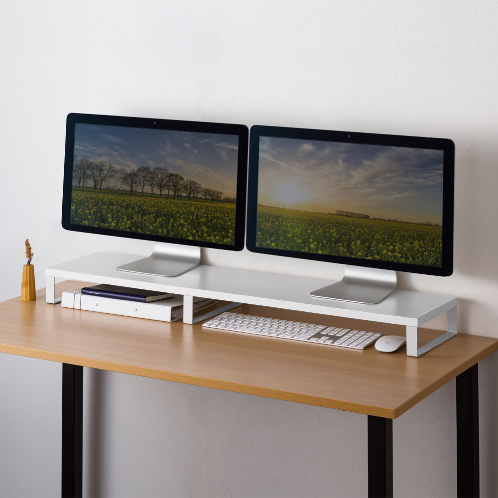 モニタースタンド [W1000xD240xH86mm] 木製机上ラック ホワイト MR-LC314W
