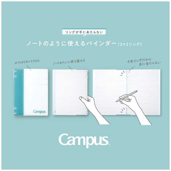 綴じたままでも書きやすい2X2リング!ノートのように使える薄型バインダー
