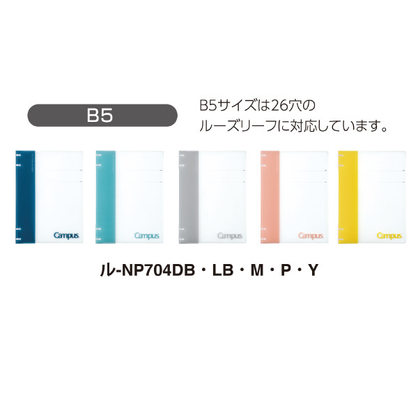 ●B5サイズ(26穴)のルーズリーフに対応しています。