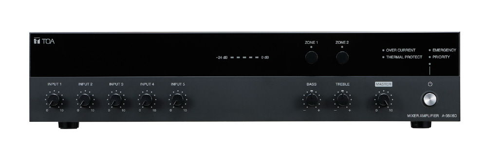 マイク入力4系統、予備入力1系統に加え、優先機能および2局ゾーンセレクターを内蔵したPAアンプです。