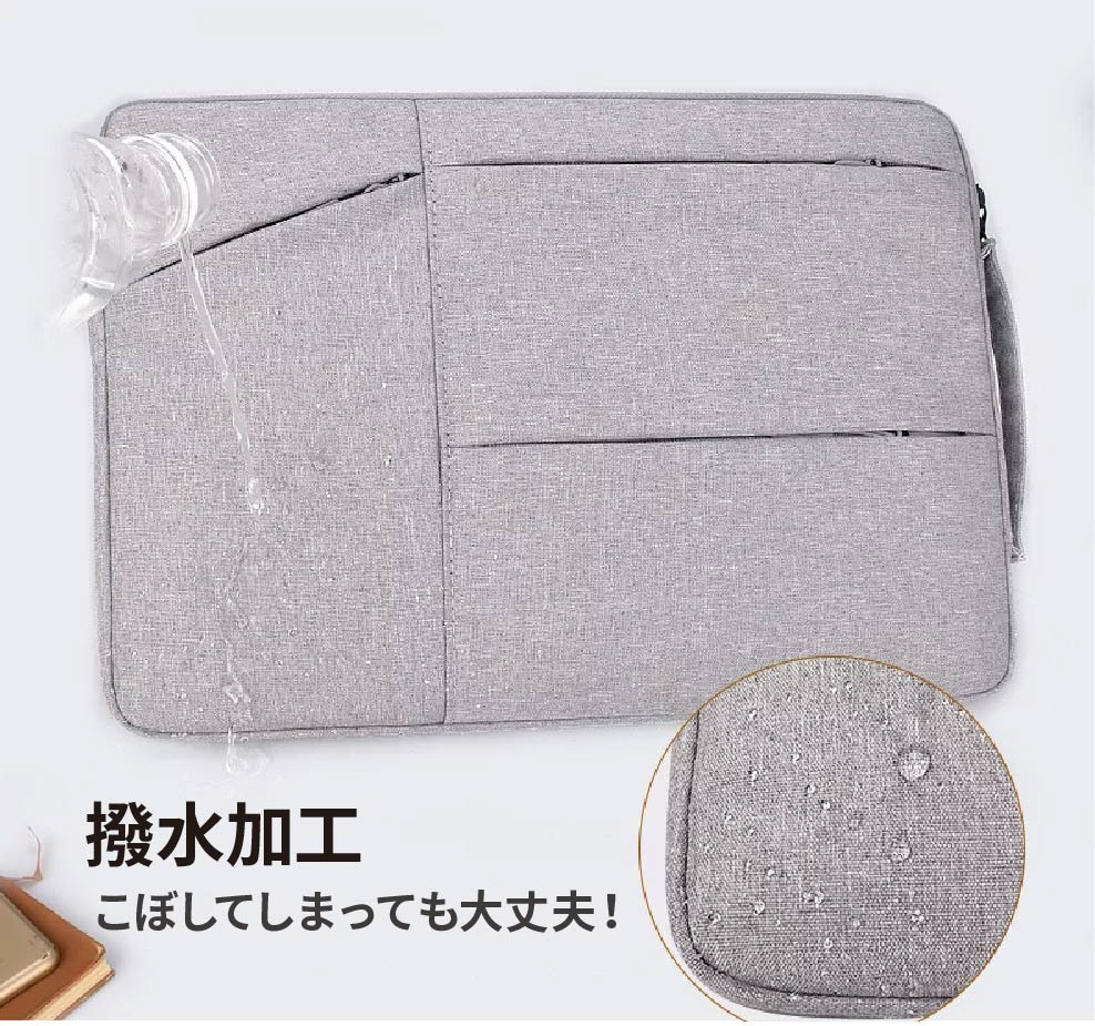 「GeeMacSleeve」が表面の生地に採用しているポリエステル素材は、撥水性に優れており、防水コーティングが施されていますので、水や湿気からノートパソコンを保護してくれます。