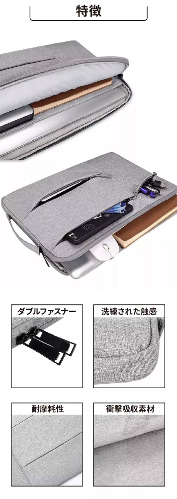 撥水&防湿/フロントポケット収納/柔らかなフリース生地の裏地がPCを守る/開閉しやすいジッパー