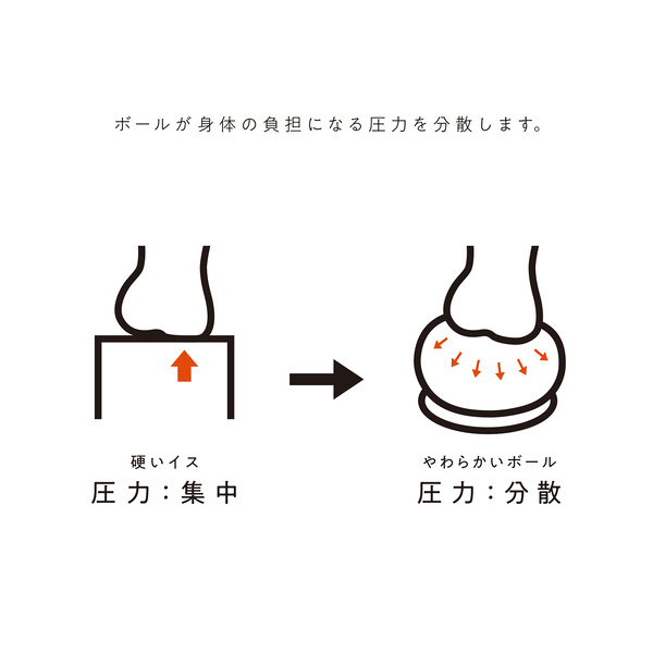 ボールが力を分散するため、長時間同じ姿勢で座り続け ても、身体に無理がない
