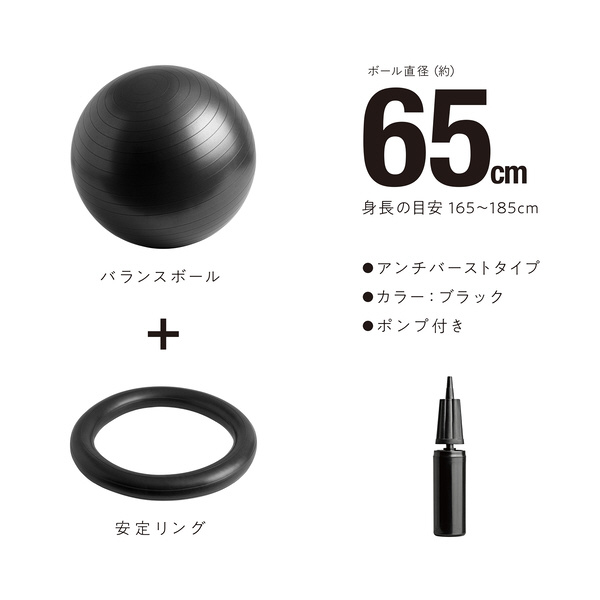 erugam バランスボール 65cm 腰にイイス ブラック