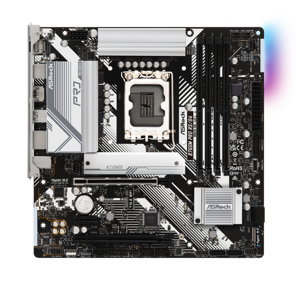 Intel B760チップセット搭載。DDR4メモリに対応し高品質部品を採用するmicroATXマザーボード