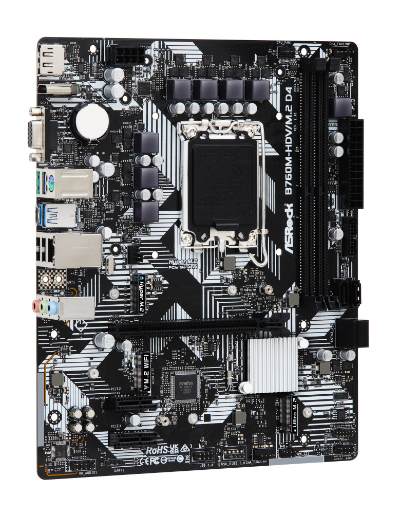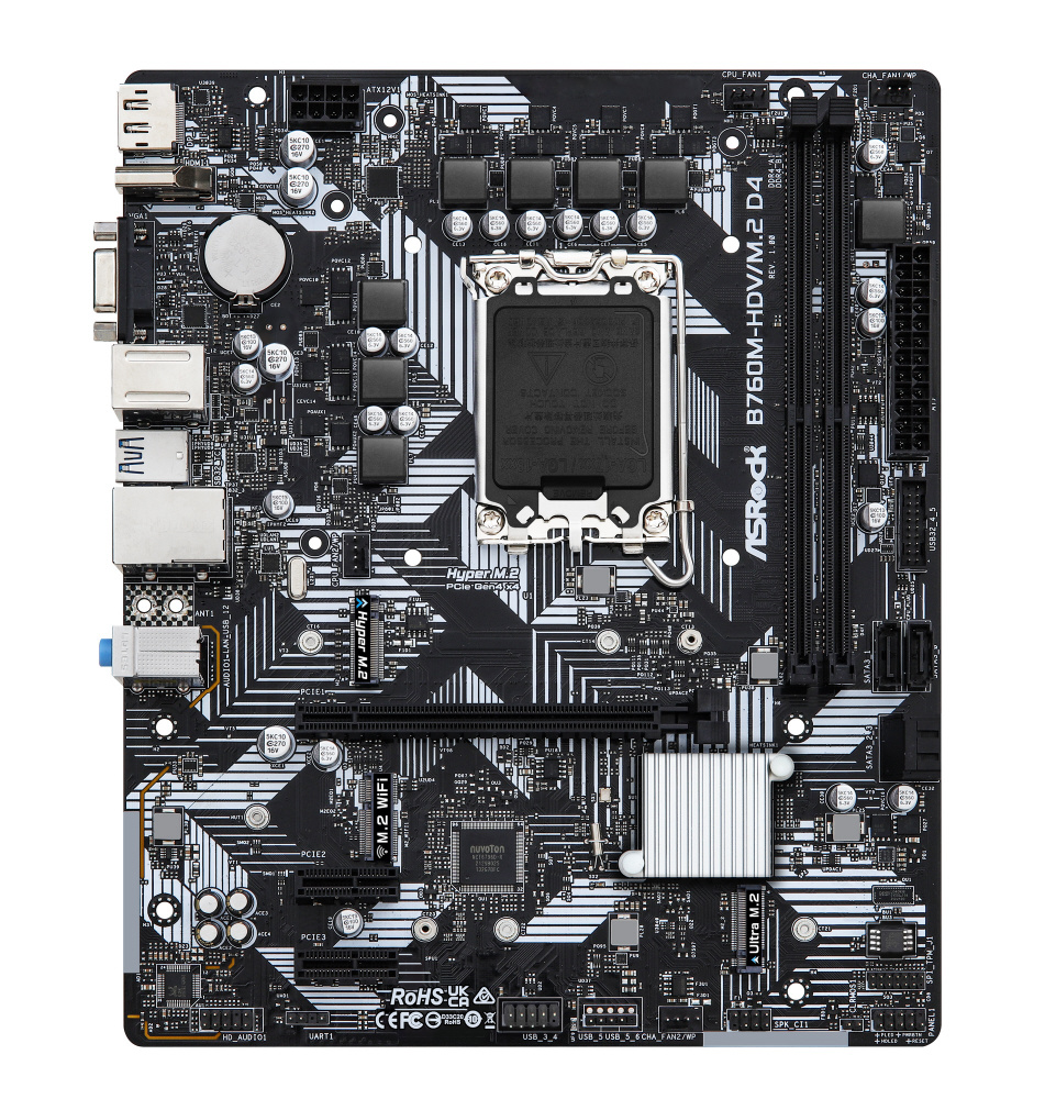Intel B760チップセット搭載。DDR4メモリに対応しコストパフォーマンスに優れたmicroATXマザーボード