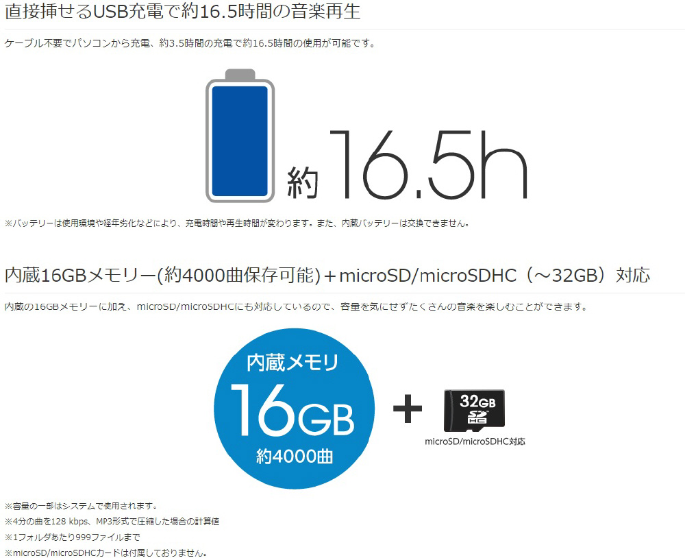 USB充電式のデジタルオーディオプレーヤー
