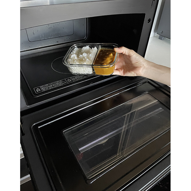 保存&食器&調理の3役をこなす、2分割耐熱フードコンテナです。