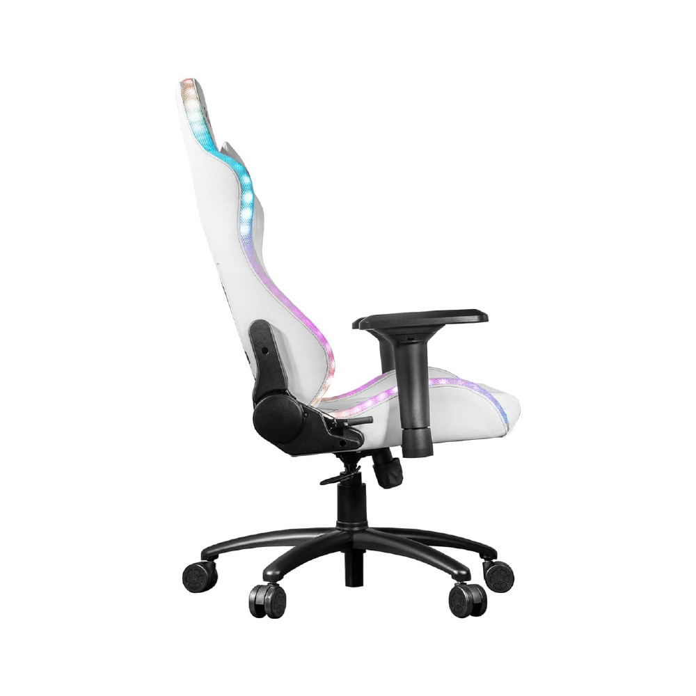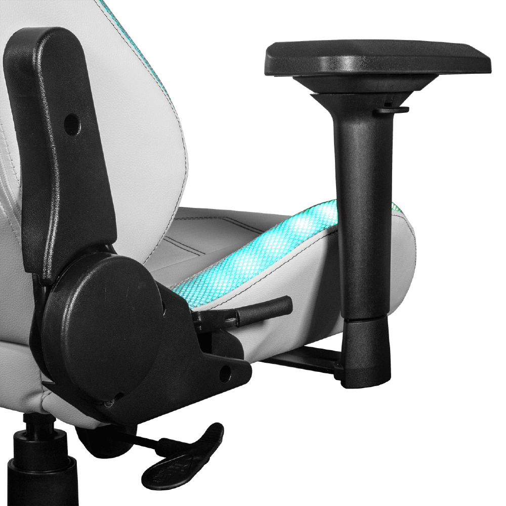 サイドにRGB LEDを搭載したゲーミングチェア、180°リクライニング・4Dアームレスト搭載