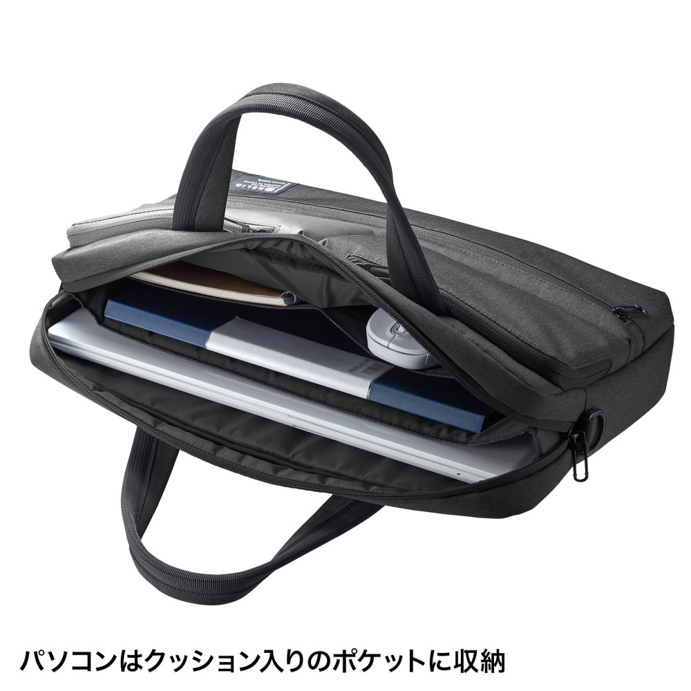 3つのフロントポケットが特長の軽くて便利なカジュアルPCバッグ。15.6インチワイド対応。