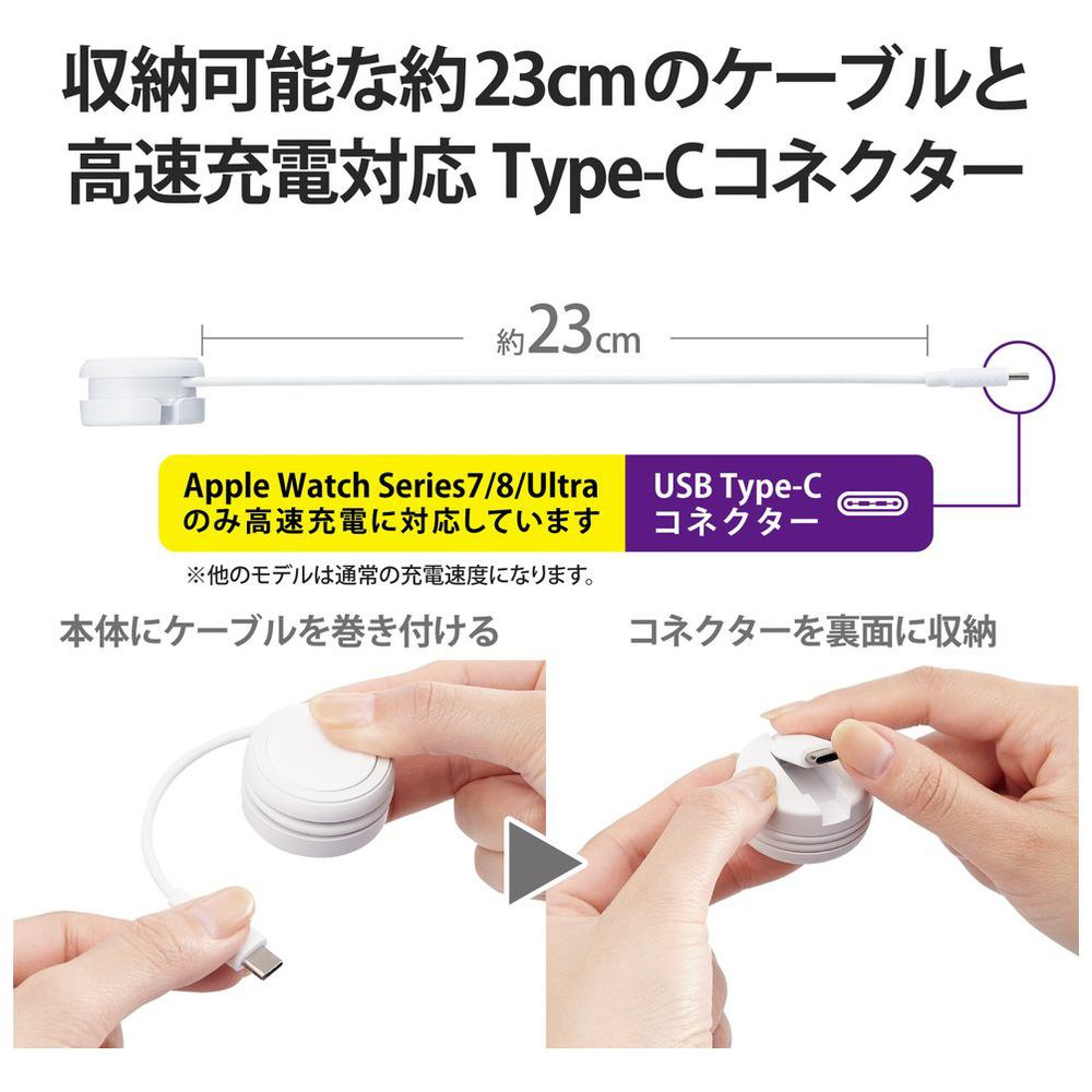 Apple Watch磁気充電ケーブル(高速充電巻き取りタイプ) ホワイト MPA-AWMCQWH