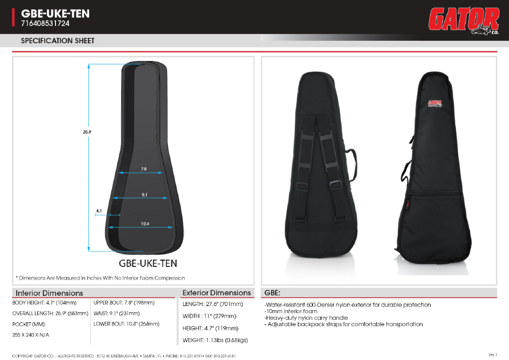 楽器ケース GATOR CASE GBE-UKE-TEN