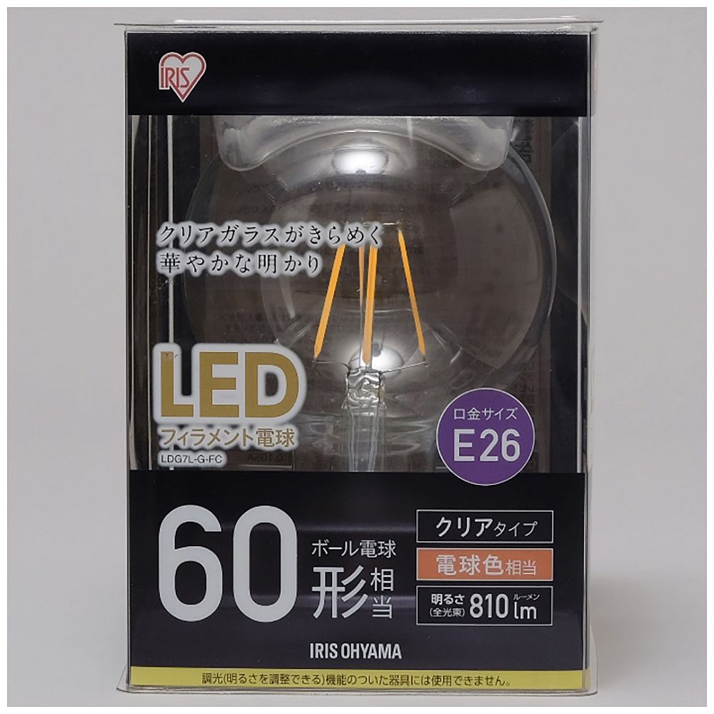| 商品名 | LEDフィラメント電球 LDG7L-G-FC [E26 /ボール電球形 /60W相当 /電球色 /1個 /全方向タイプ] |