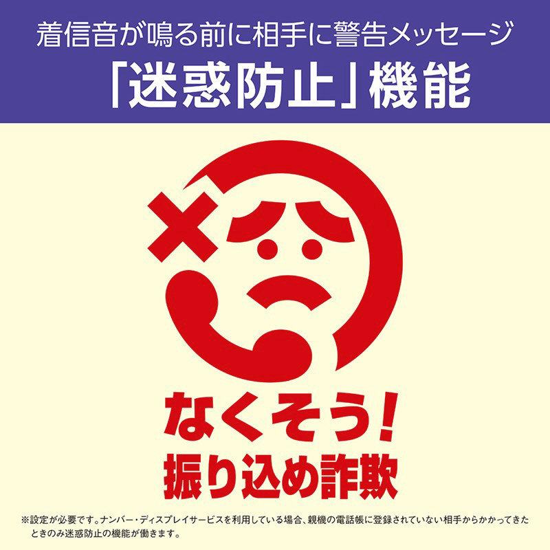 振り込め詐欺や迷惑電話の対策に「迷惑防止」機能を搭載