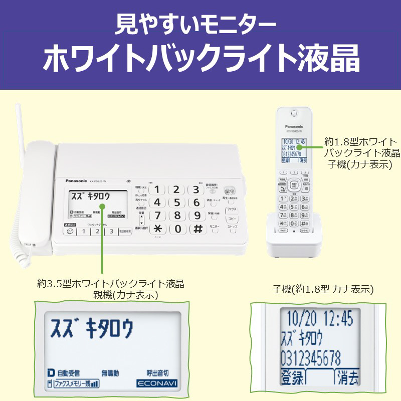 コードレス普通紙FAX ホワイト KX-PD225DL-W [子機1台 /普通紙]