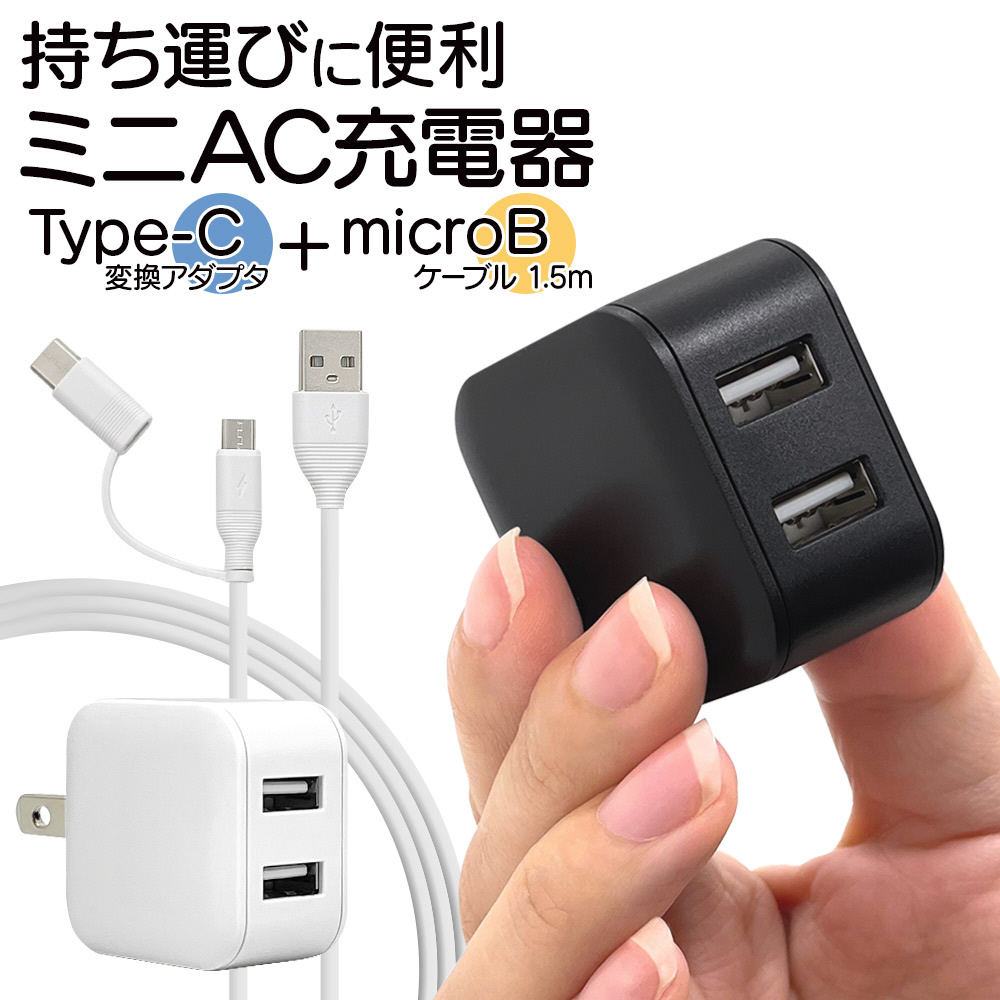 AC充電器 USB A*2ポート 2.4A(A to microBケーブル1.5m+TypeC変換)