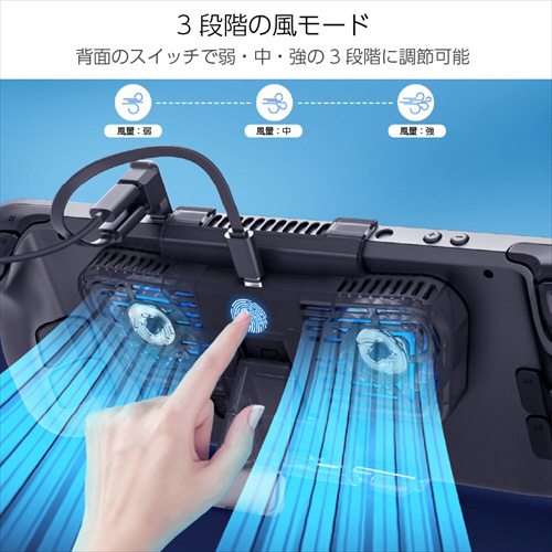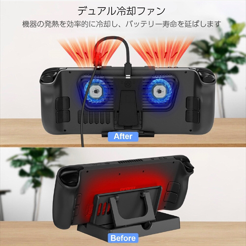Steam Deck(スチームデック)対応 キックスタンド付き クーリングファン 3段階風速調節可能 一体型冷却装置 排熱 熱対策アクセサリー 装着簡単