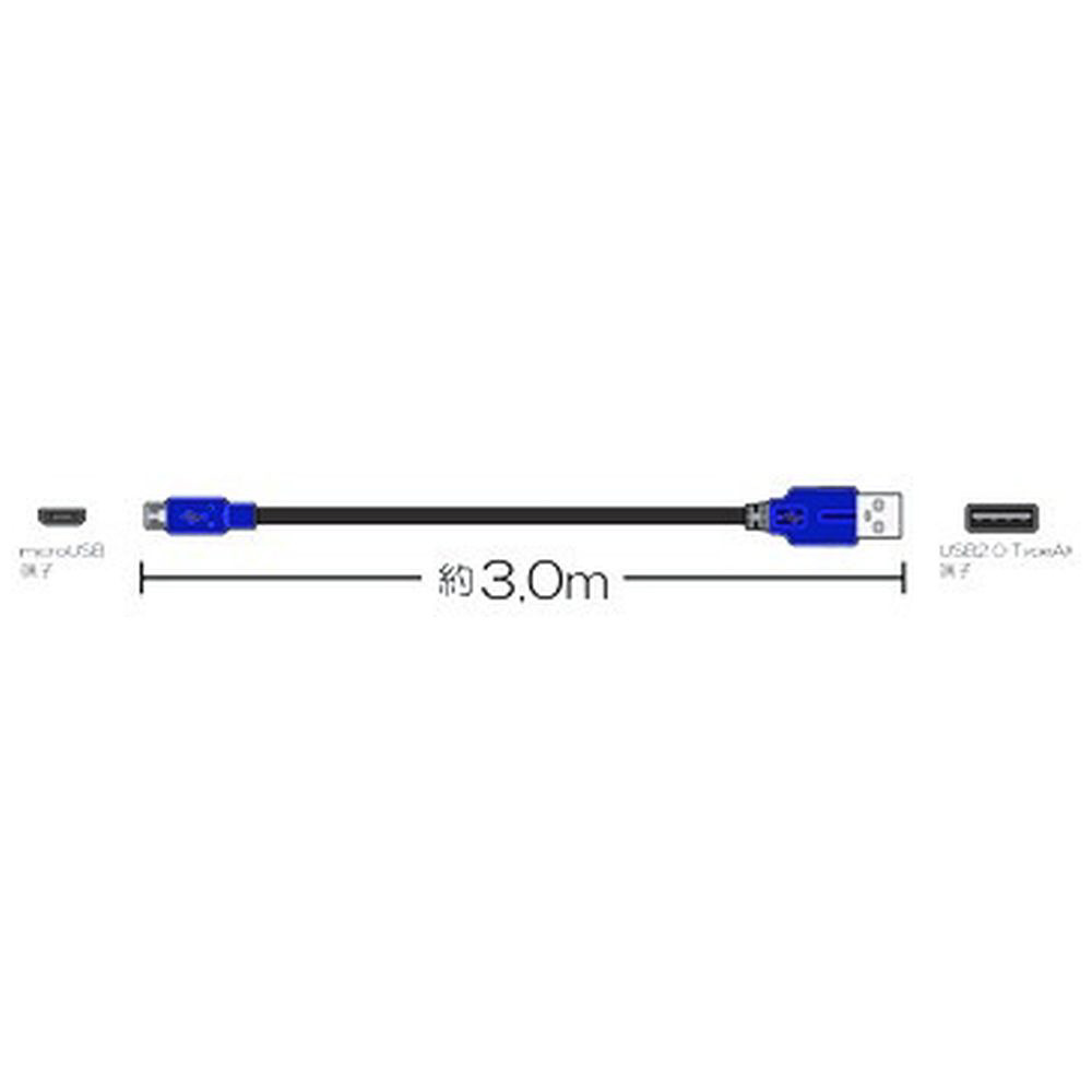【ケーブル長】約3.0m 【USB端子】Type-A ⇔ microUSB Type-B 【USB規格】USB2.0