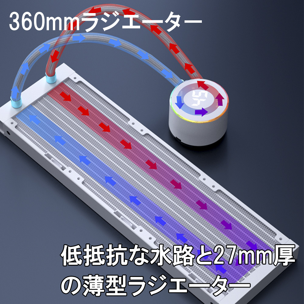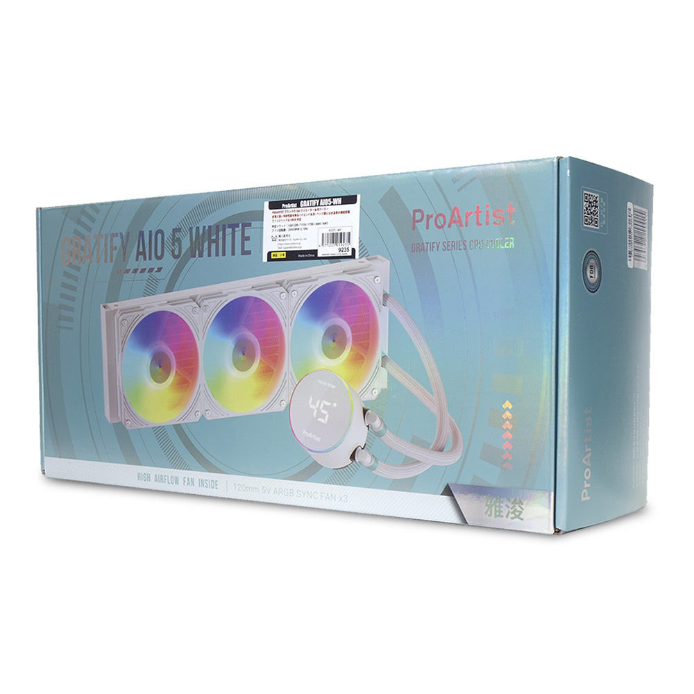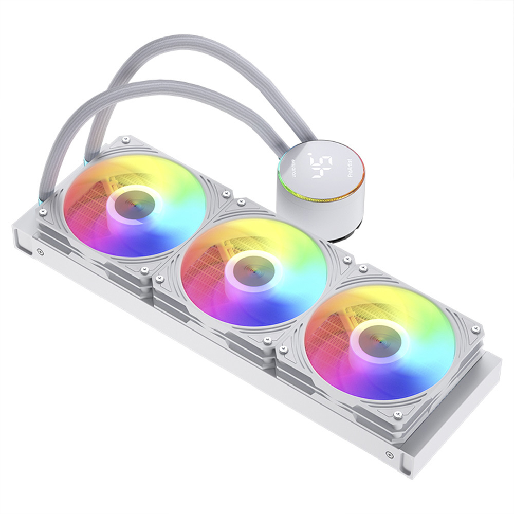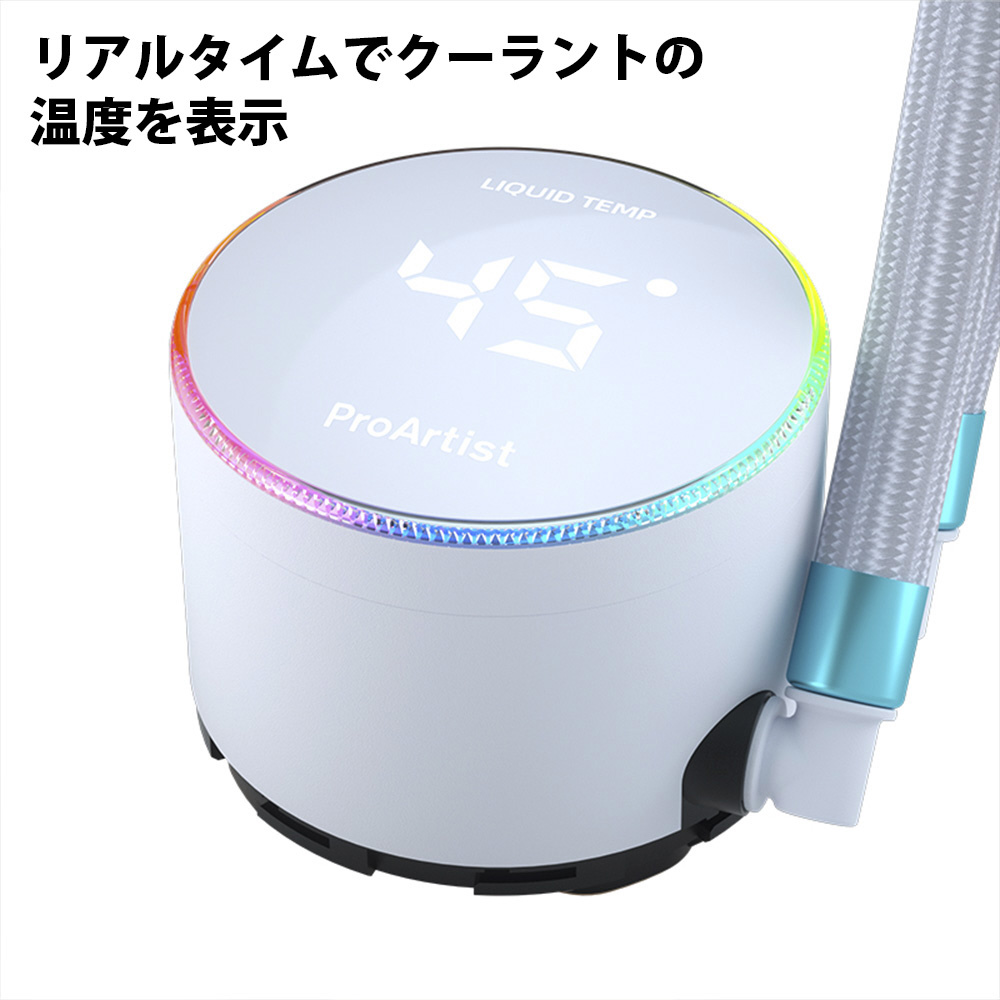 ProArtistブランドのマルチソケット対応、回転式可動パネル、オールインワン水冷CPUクーラー「GRATIFY AIO5-WH」オールホワイトモデル