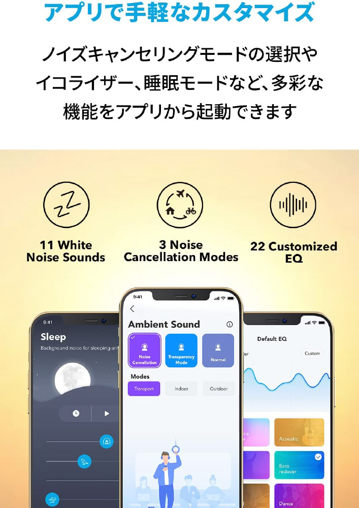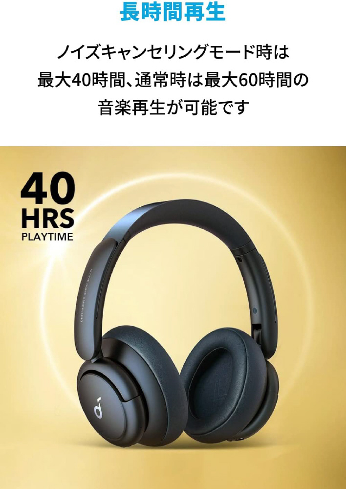 Anker独自のウルトラノイズキャンセリングや外音取り込み機能等を搭載し、音質 / 没入感 / 機能性全てにおいてアップグレードされた上位モデルのワイヤレスヘッドホン。