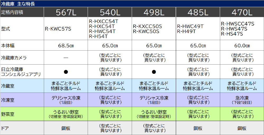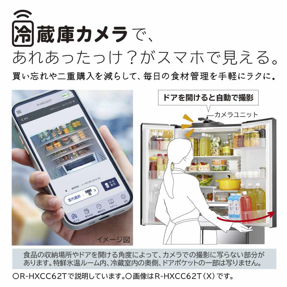 「冷蔵庫カメラ」で毎日の食材管理を手軽にラクに。幅65cmでもたっぷり収納、大容量540L。「まるごとチルド」など独自機能で食品をおいしく保存。
